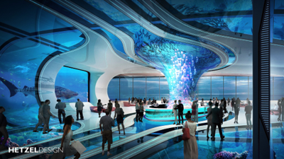滨海新片区是度假区文旅功能的核心承载区,规划用地面积约3.07平方公里,建筑面积约190万平方米,包含魔幻星岛区、秘境海湾区两大主题片区。规划引入国际顶级的文旅休闲度假品牌,汇聚特色旅游业态,打造集“吃购游文娱住”全方位体验的复合型一站式娱乐综合体。区域以220米海洋主题度假酒店为地标,目标打造杭州湾北岸“过眼难忘”、“一生必去”的标志性建筑。项目用地面积约9.57公顷,建筑面积约33.5万平方米,功能业态主要包含酒店、海洋馆、度假屋、水上运动中心、室外沙滩、滨海商业街、码头等功能。项目邀请美国萨夫迪建筑事务所、美国亨泽尔设计公司、英国扎哈.哈迪德建筑事务所和中国上海建筑设计研究院有限公司4家国内外顶尖机构参与概念方案设计,由中国科学院院士郑时龄担任专家组组长主持完成项目专家评审工作项目概念设计。